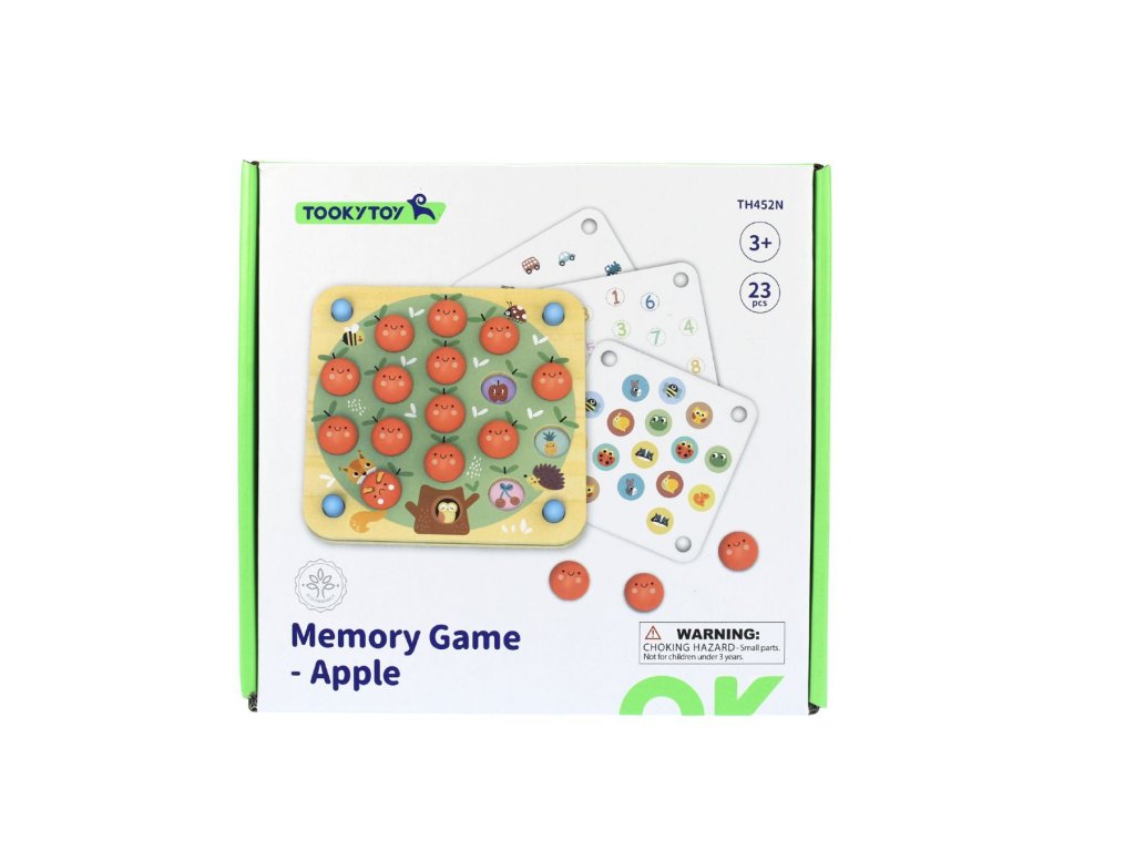 Drevené Pexeso Jablká Pastel Originálne pexeso, ktoré sa neustále mení Drevené pexeso Jablká od Tooky Toy v nežných pastelových farbách zaujme deti svojim originálnym prevedením a variabilitou hry. Hra sa totiž mení podľa toho, akú z 10 predlôh práve vložíte do veľkého dreveného stromu. Budú to autá, zvieratká, čísla alebo tvary? Do otvorov na strome potom umiestnite 16 drevených jabĺčok. Následne hráči dávajú preč vždy 2 jabĺčka a zisťujú, či sa pod nimi skrývajú rovnaké obrázky.Pexeso je skvelé na rozvoj pamäte Drevené pexeso s jabĺčkami je skvelé na trénovanie pamäte, rozvoj slovnej zásoby aj učenie čísel či písmeniek. Deti si tiež cvičia jemnú motoriku či koordináciu ruka-oko. Drevené pexeso je skvelé ako spoločenská hra, ale deti sa s ním ľahko zabavia aj samostatne. Je vyrobené z dreva z udržateľného lesníctva, použité farby sú netoxické a pre deti je bezpečné.Tu nájdete pravidlá hry