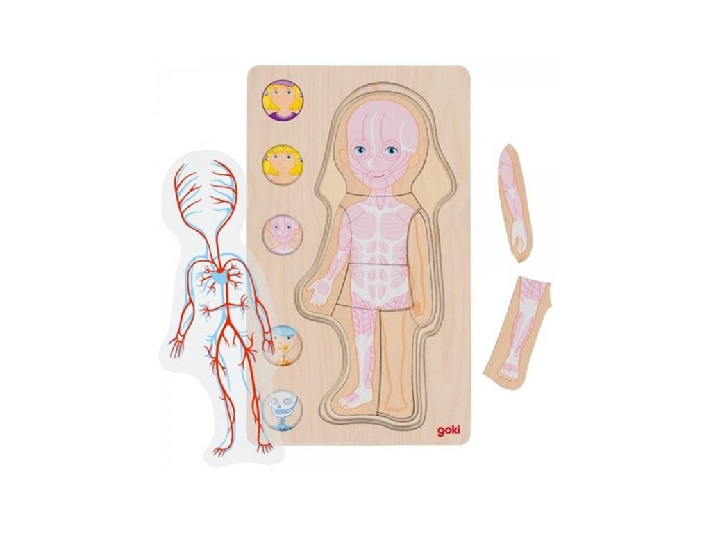 Edukatívne drevené puzzle s motívom ľudského tela.