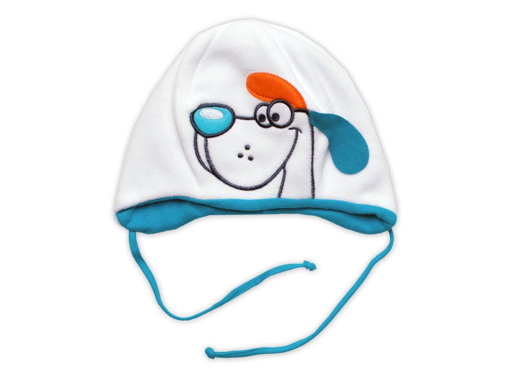 Dvouvrstvá fleecová čepice na zavazování Pejsek, bílá, 42cm, 74/80
