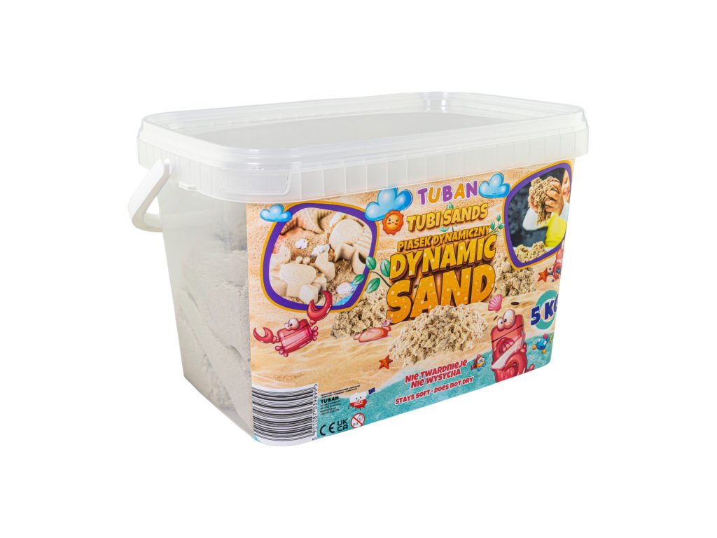 Dynamický piesok Natural Box 5 kg Praktické balenie v boxe Dynamický piesok má schopnosť zachovať si tvar a štruktúru bez použitia vody. Je to ideálne riešenie pre deti, ktoré milujú hravú kreativitu, ale aj pre rodičov, ktorí hľadajú bezpečnú a čistú alternatívu k tradičnému piesku. Dynamický piesok sa ľahko tvaruje, nesype sa a nevysychá, takže sa s ním môžete hrať opakovane po dlhú dobu. Je ideálny na rozvoj jemnej motoriky a podporu detskej kreativity. Balenie obsahuje 5 kilogramov bezfarebného dynamického piesku v praktickom boxe na hranie. Odborník na detskú zábavu Tuban ponúka široký výber kvalitného dynamického piesku a rôznych doplnkov. Dynamický piesok je vyrobený z bezpečných a netoxických materiálov, ktoré sú šetrné k životnému prostrediu, neobsahujú borax.