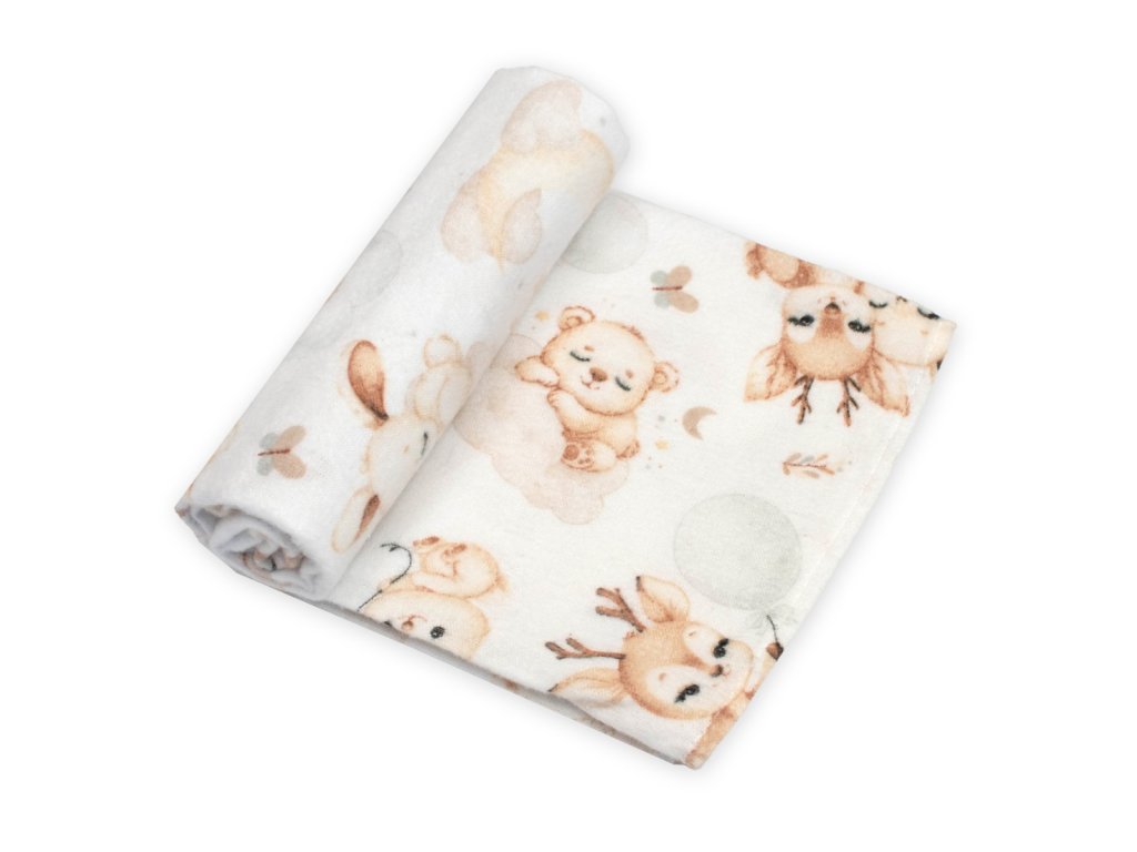 Flanelová plienka, 70x80 cm - Sny zvieratiek, biela/béžová