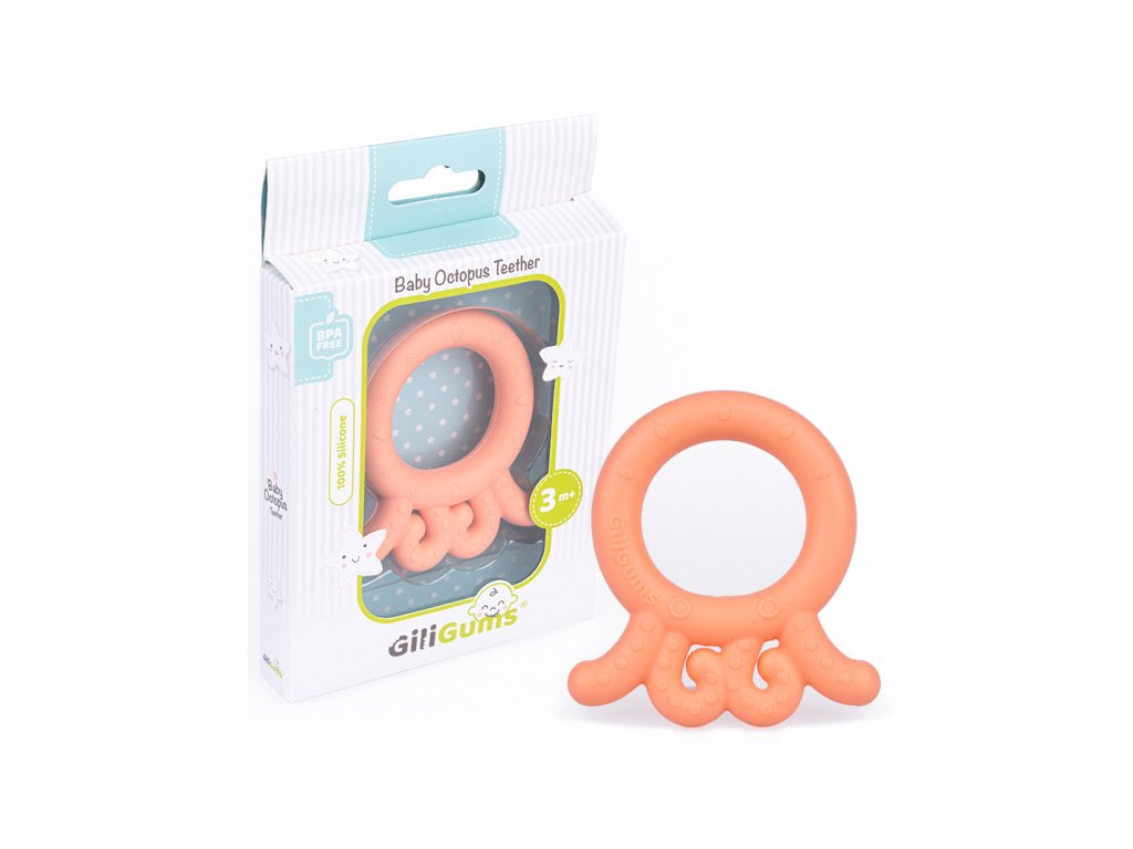 GiliGums Detské hryzátko Baby Octopus Teether, 3m+, marhulova, 1 ks