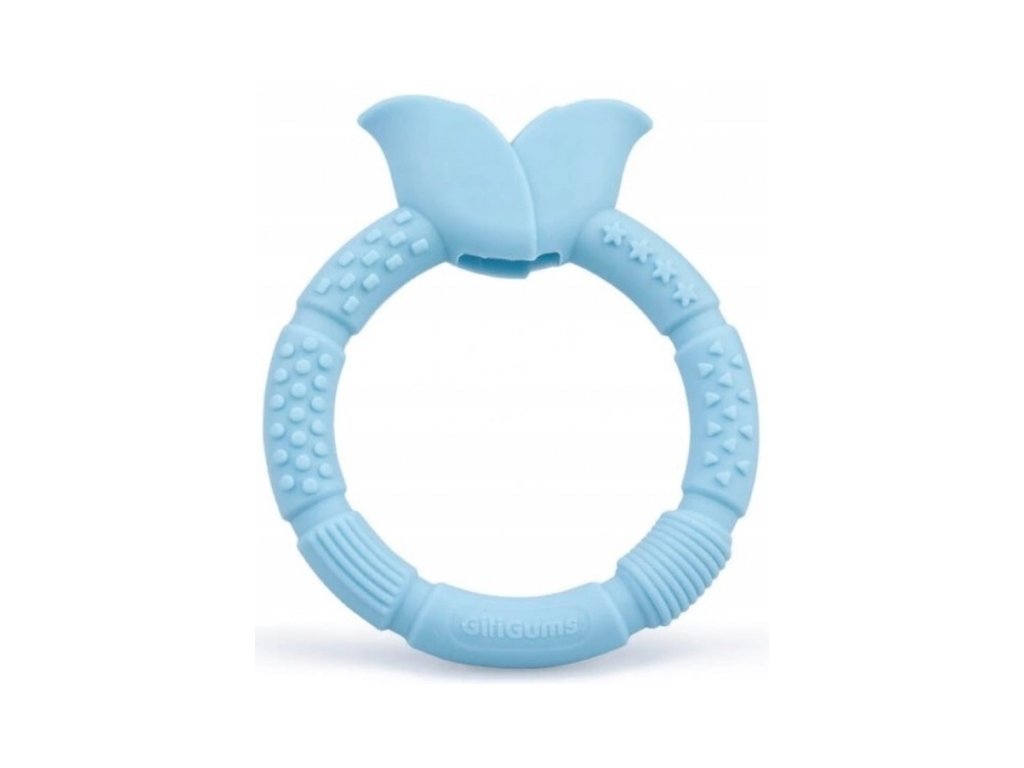 Modré hryzátko v tvare kvetu bude krásnym doplnkom pre bábätko. Tvar hryzátka uľahčuje uchopenie pre malé rúčky a rôzne povrchové štruktúry a výstupky pomáhajú pri prerezávaní zúbkov a jemne masírujú boľavé ďasná.