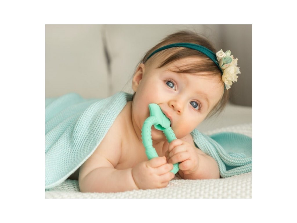 Modré hryzátko v tvare kvetu bude krásnym doplnkom pre bábätko. Tvar hryzátka uľahčuje uchopenie pre malé rúčky a rôzne povrchové štruktúry a výstupky pomáhajú pri prerezávaní zúbkov a jemne masírujú boľavé ďasná.