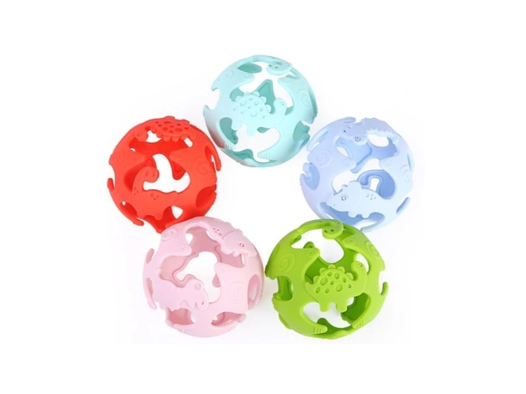 Mäkká loptička, zdobená dinosaurami, poteší každé batoľa. Vyrobené z bezpečného silikónu, je odolné proti rozdrveniu a otvory v ňom uľahčia uchopenie hračky malým rúčkam. Výstupky rôznych tvarov prinesú úľavu boľavým ďasnám prerezávajúceho sa zúbku. Loptička je dostupná v niekoľkých farbách.