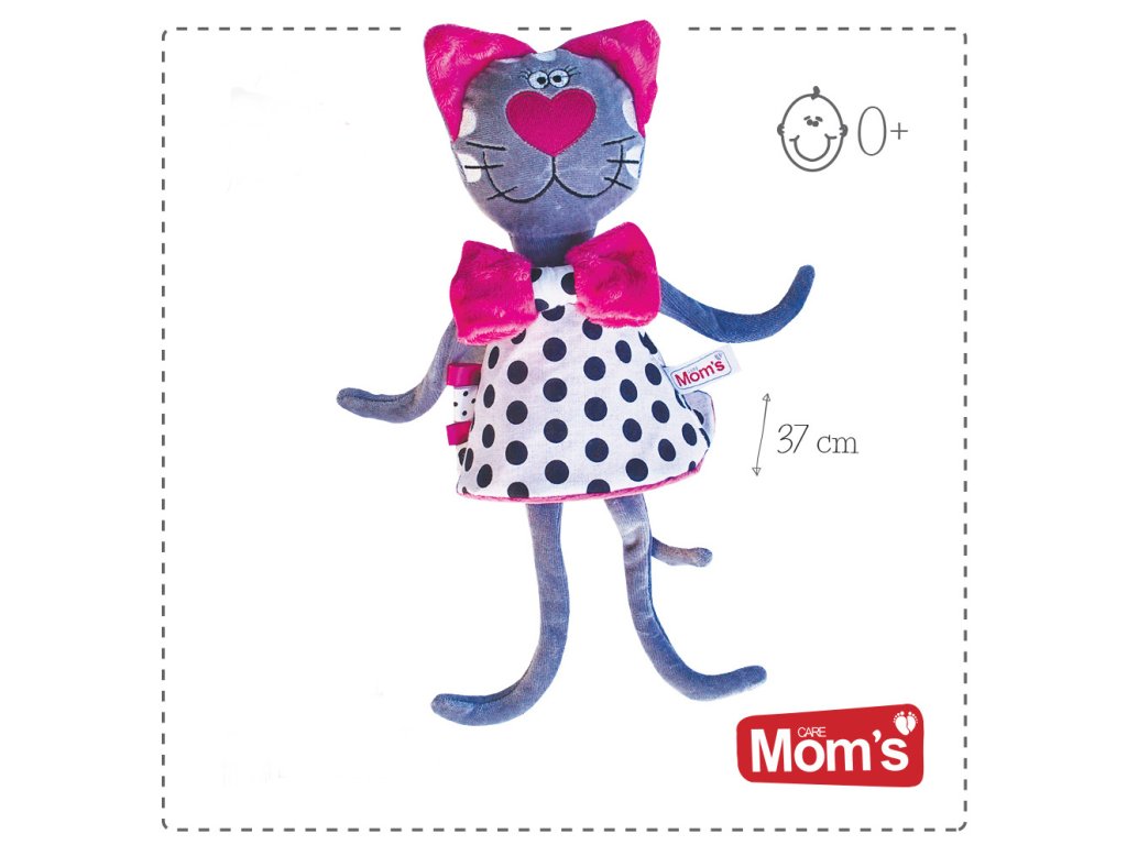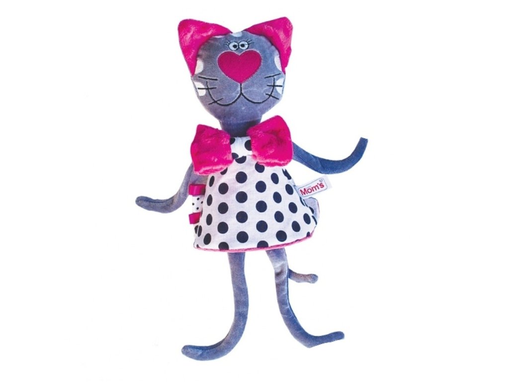 Výrazné farby hračky upútajú Vaše bábätko, telíčko je jemné a príjemné na dotyk, šatičky mačičky šuštia.