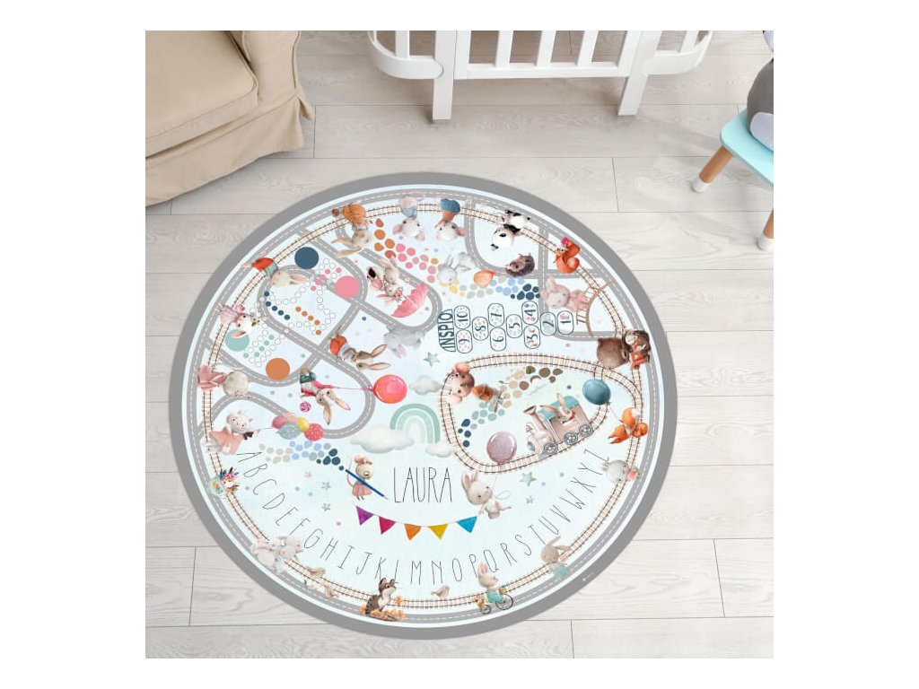 Hracia podložka pre deti na hranie s cestami a menom - Akvarelové zajačiky