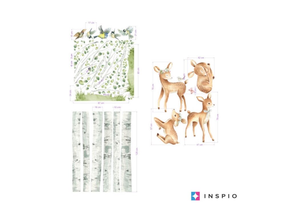 Hravé srnky v brezovom lese - samolepky do detskej izby