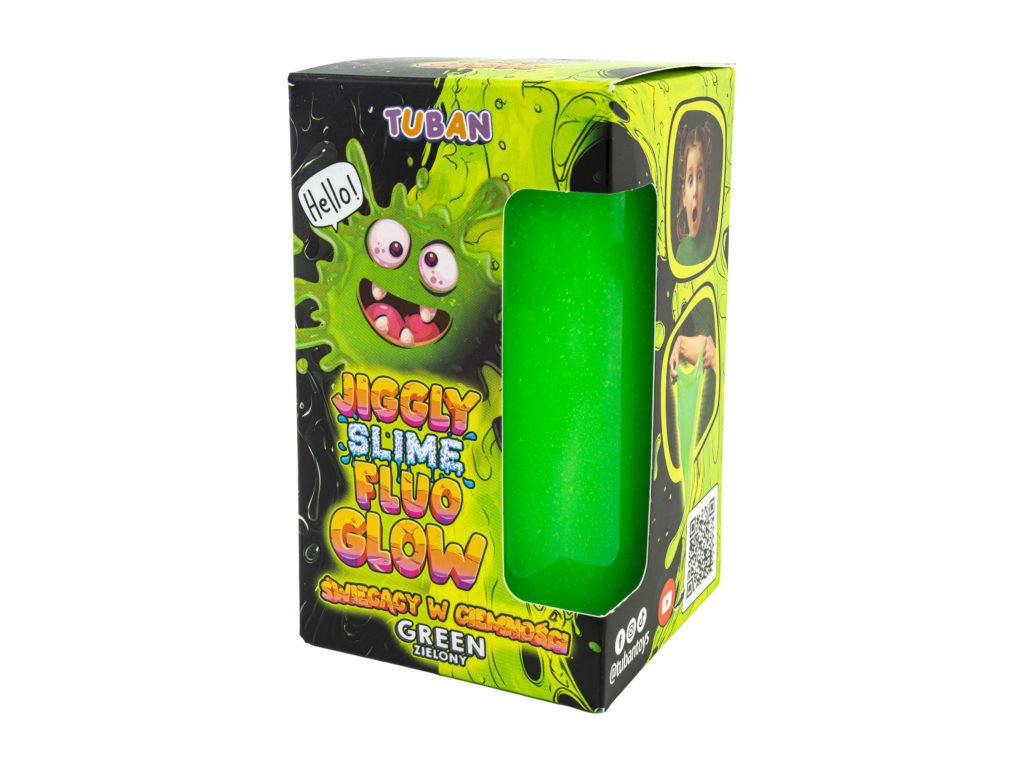 Jiggly Slime Sliz Fluo Glow zelený 430 g Absolútne slizové šialenstvo Jiggly Slime je sliz s úžasnou textúrou pripravený na okamžitú hru. Hra so slizom je ideálna na rozvoj jemnej motoriky, zmyslového vnímania a podporuje u detí kreativitu. Deti ho môžu naťahovať, tvarovať, stláčať. Sliz ponúka nekonečné možnosti kreativity a hry. Každé dieťa miluje objavovanie nových textúr a materiálov a sliz bude určite jedným z najobľúbenejších.Kvalitné a bezpečné slizy Pre deti môže byť manipulácia so slizom taktiež upokojujúca a relaxačná. Je to skvelý spôsob, ako si oddýchnuť a znížiť stres po náročnom dni. Objavte všetky Jiggly slimes rôznych farieb a vôní. Sliz je vyrobený z bezpečných a netoxických materiálov, ktoré sú šetrné k životnému prostrediu, neobsahujú borax. Balenie: 430 gSenzorická hra umožňuje deťom objavovať svet okolo seba prostredníctvom zmyslov Hranie s rôznymi textúrami, farbami a vôňami nielenže stimuluje ich zmyslové vnímanie, ale taktiež podporuje ich kognitívny vývoj, jemnú motoriku a emocionálnu inteligenciu. S produktmi značky Tuban môžu deti preskúmavať rôzne senzorické podnety a objavovať nové spôsoby učenia a zábavy.