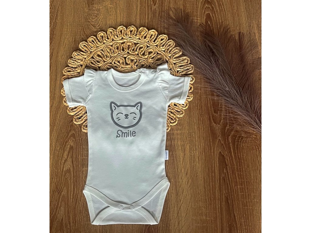 Kojenecké body, kr. rukáv Mamatti, zap. u krku, Puntík - bílé s potiskem