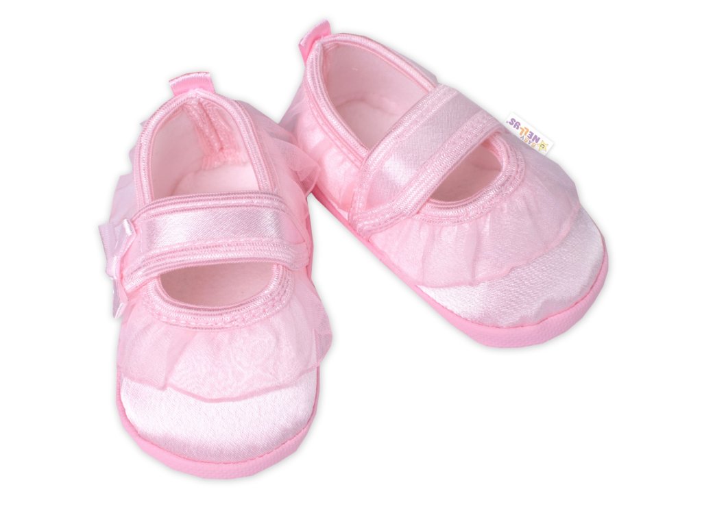 Kojenecké capáčky/botičky saténové s volánkem, Baby Nellys, růžové
