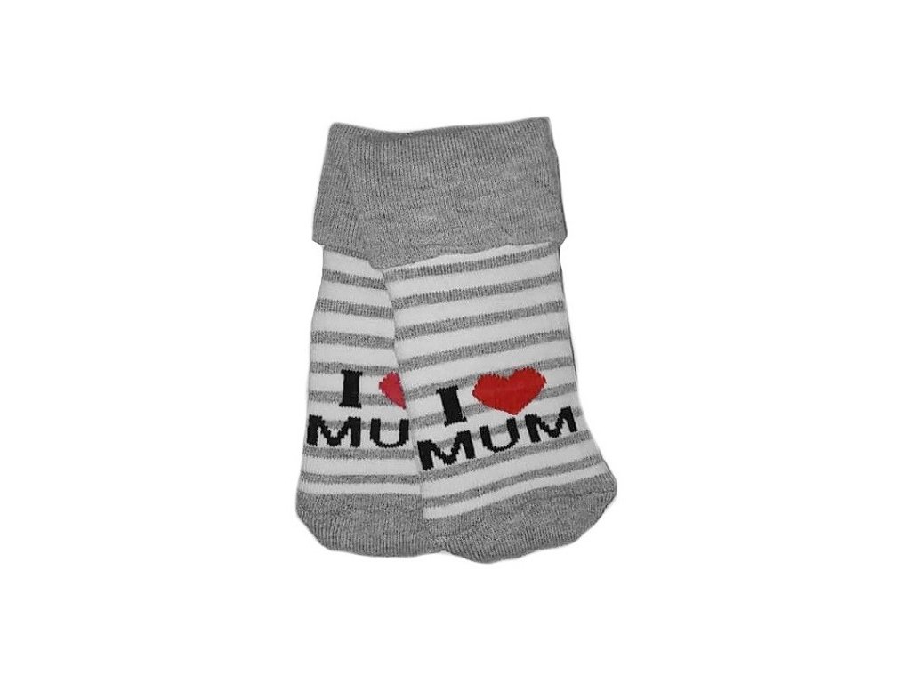 Kojenecké froté bavlněné ponožky I Love Mum, bílo/šedé proužek
