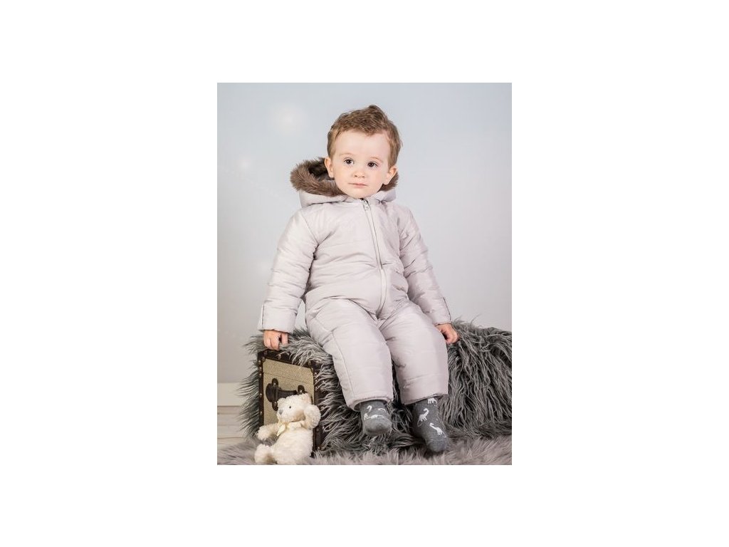 Kombinéza s kapucí a kožíškem Baby Nellys ®prošívaná, bez šlapek - sv. šedá