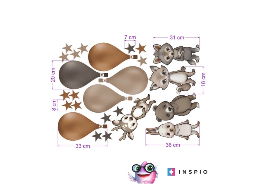 30cm vysoké zvieratká v hnedých odtieňoch do detskej izby z luxusnej textilnej fólie.