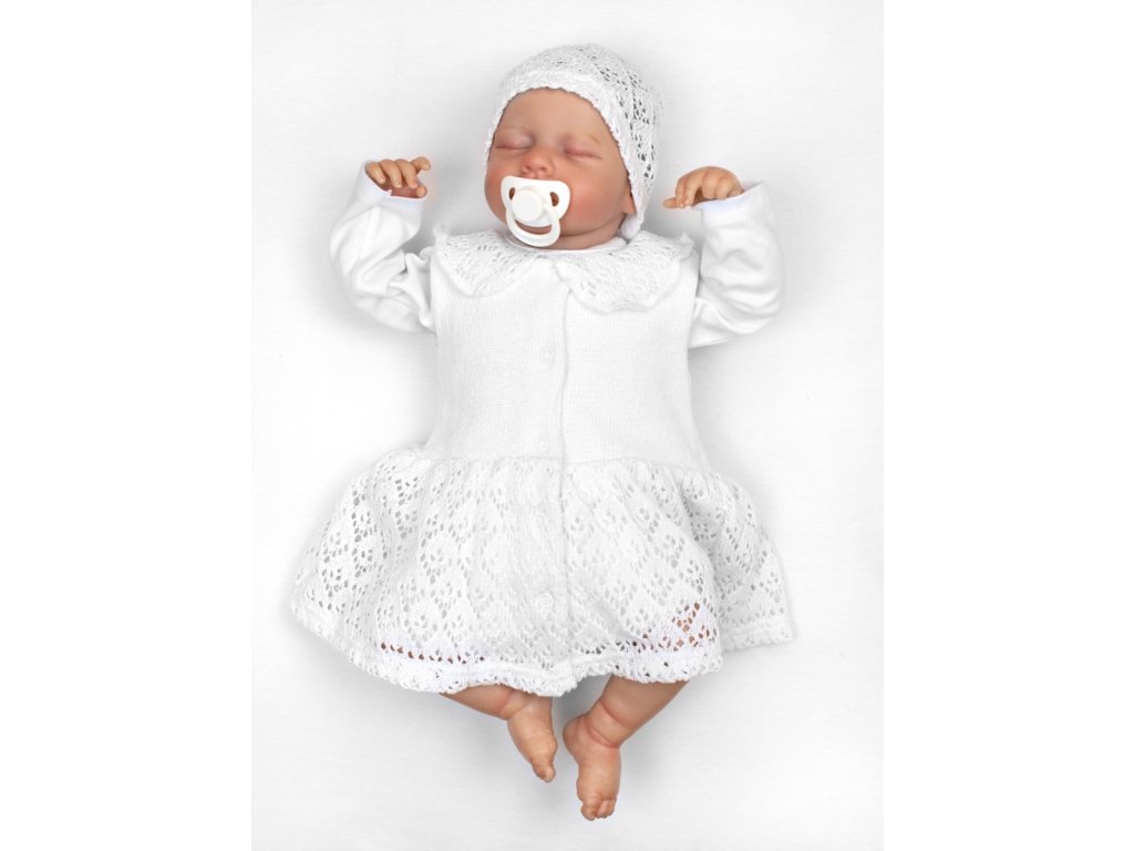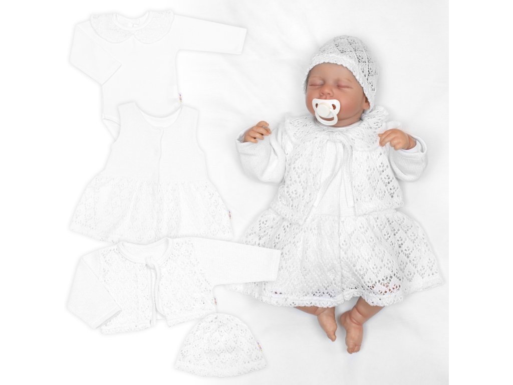 Luxusní pletená sada pro holčičku na křtiny a oslavu 4D design - bílá