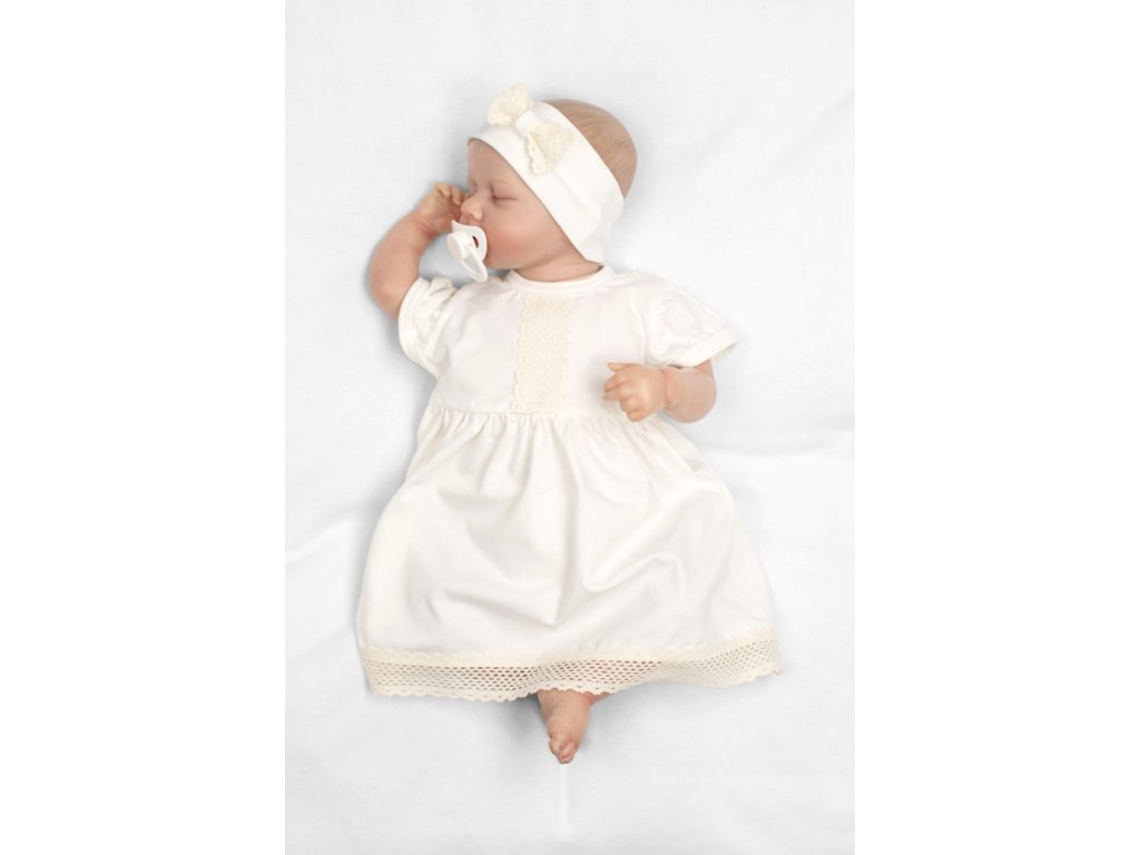 Luxusní šatičky s krajkou Sofia, krátkým rukávek + čelenka ,2D sada, smetanové