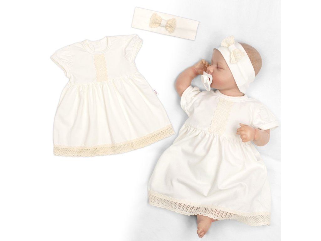 Bavlněné šatičky s čelenkou Baby Nellys — elegantní komplet pro miminka | Luxusní šaty s krajkou.