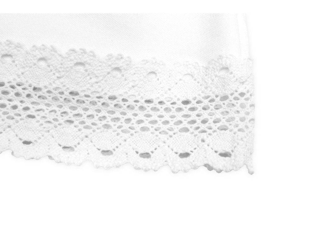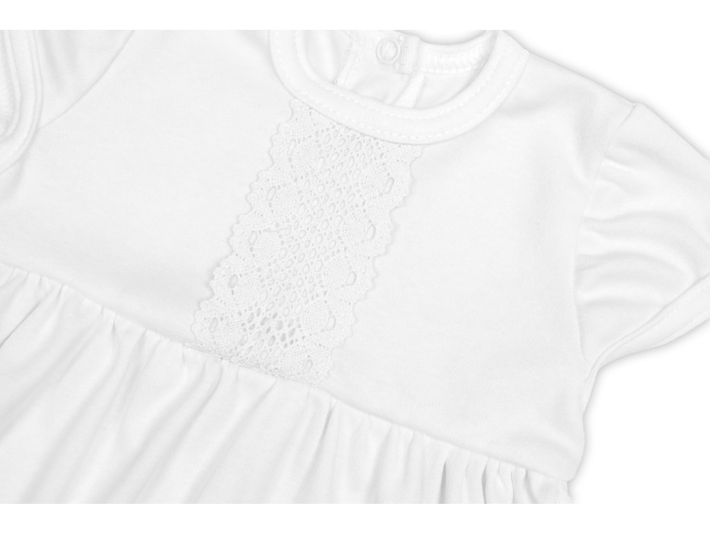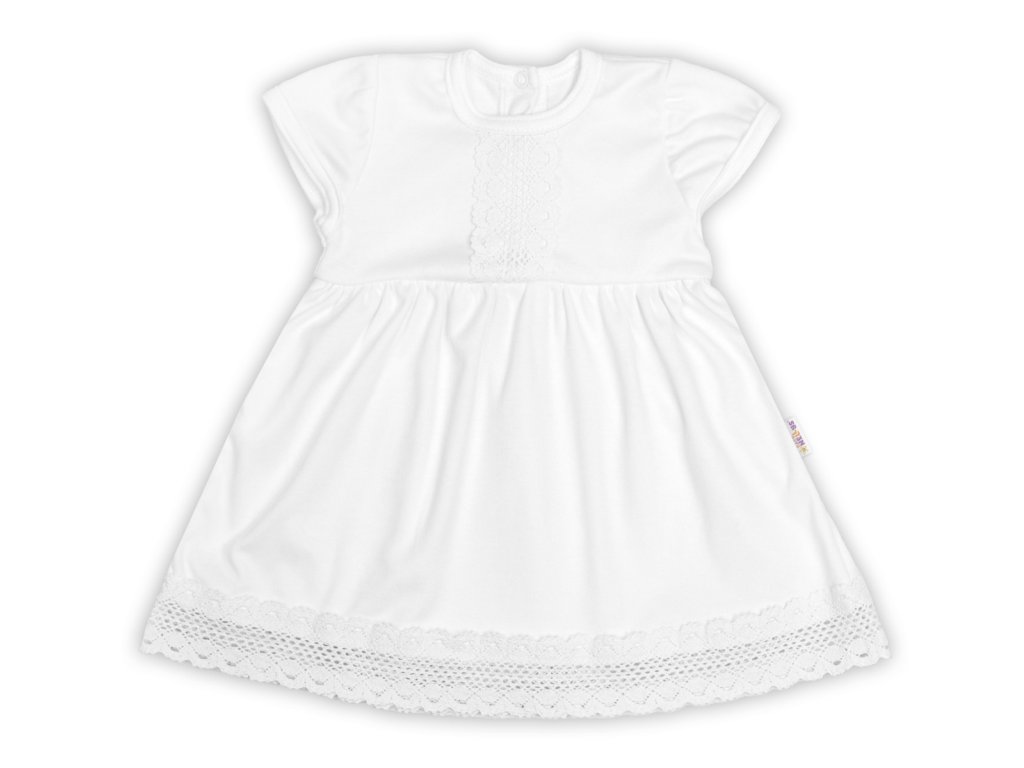Bavlněné šatičky v bílé barvě s jemným krajkovým zdobením a krátkým rukávem.
