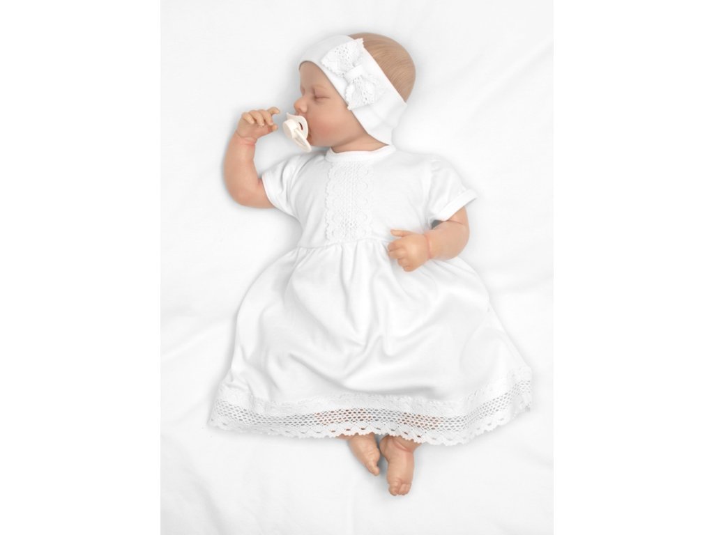 Bavlněné šatičky s čelenkou Baby Nellys — elegantní komplet pro miminka | Luxusní šaty s krajkou.