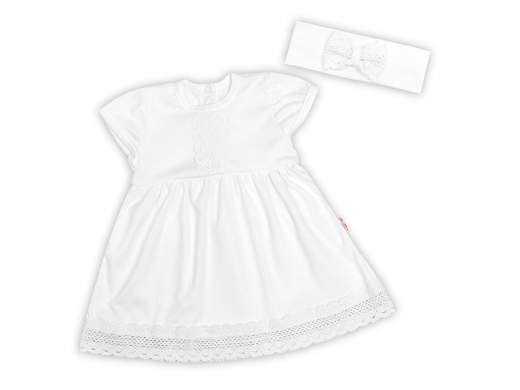 Luxusní šatičky s krajkou SOFIA, krátkým rukávek + čelenka ,2D sada, bíle