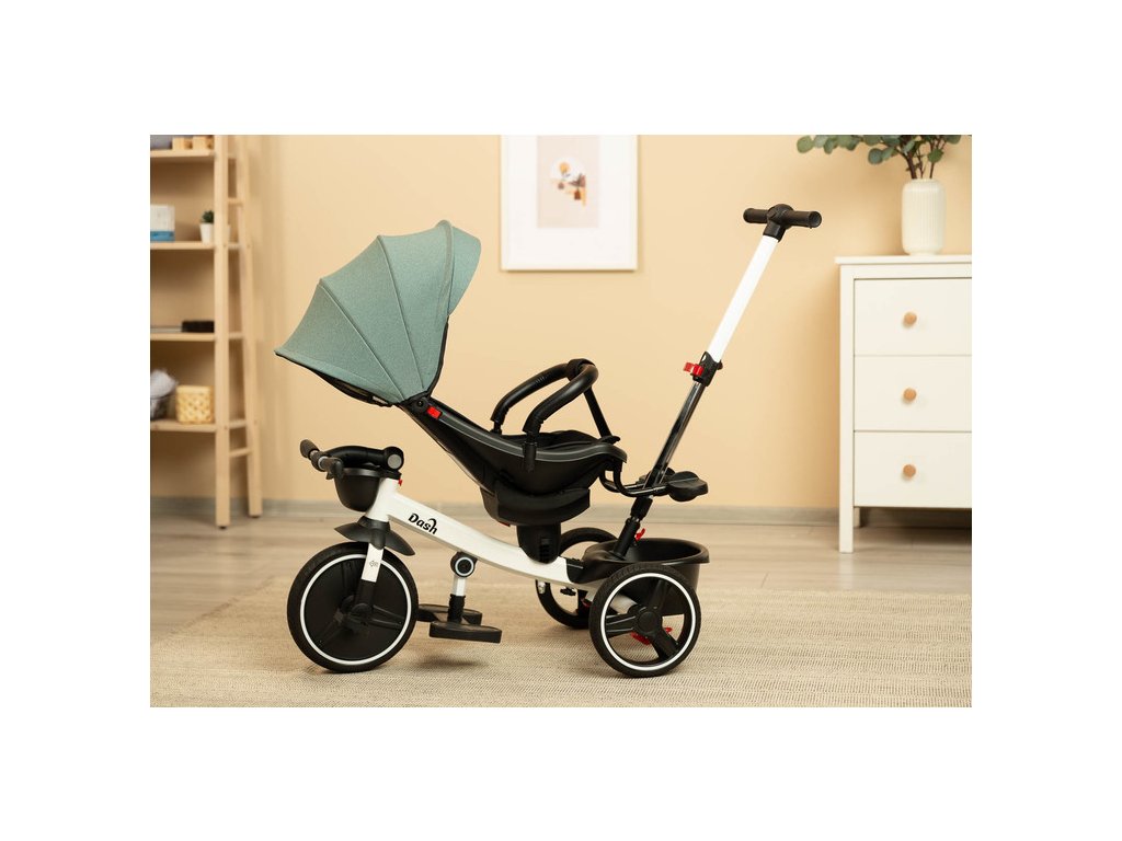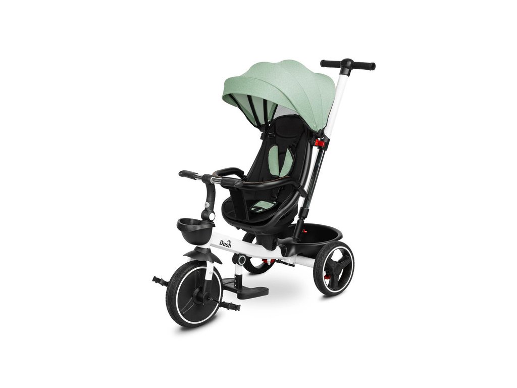 Tříkolka Dash je skvelou alternatívou k športovému kočíku. Možno ju použiť ako bicykel, na ktorom môže dieťa jazdiť samostatne, alebo ako kočík s ochrannou strieškou, v ktorom môže dieťa sedieť čelom alebo chrbtom k smeru jazdy. Predné a zadné košíky umožňujú prepravu drobností.