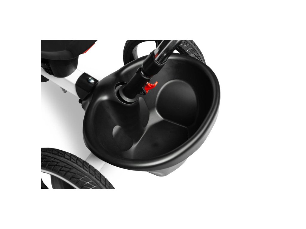 Trojkolka je vybavená dvoma opierkami nôh: jedna je súčasťou rámu a druhá je pripevnená k sedadlu, obe sú nastaviteľné pre pohodlie dieťaťa. Zadné kolesá majú brzdy, ktoré zaisťujú, že trojkolka zostane bezpečne na mieste.