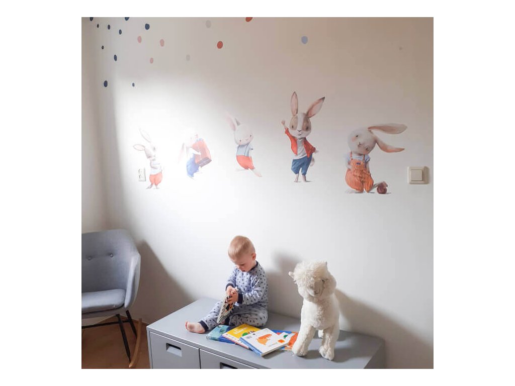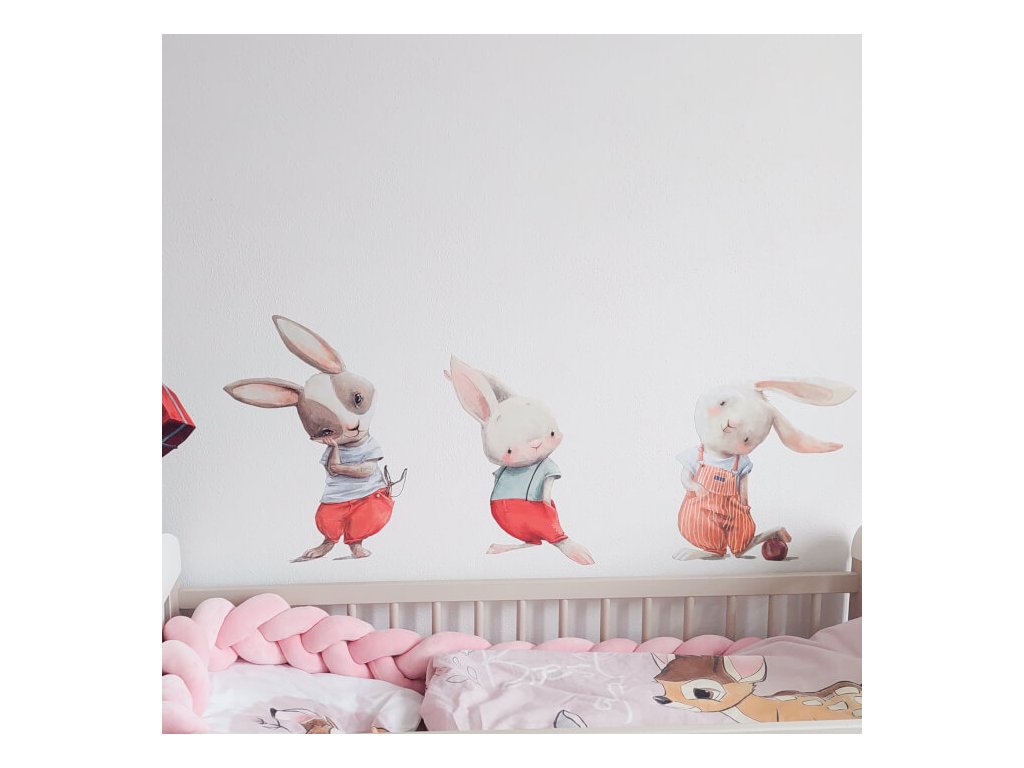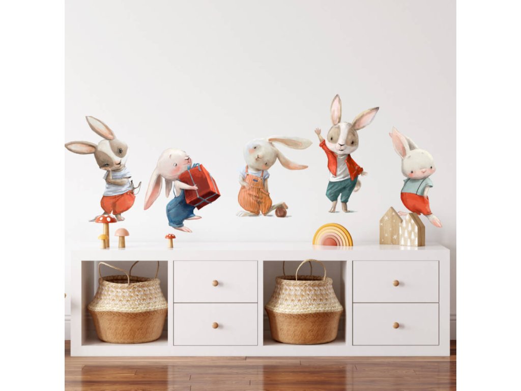 Malí zajkovia z rozprávkova - akvarelové nálepky na stenu