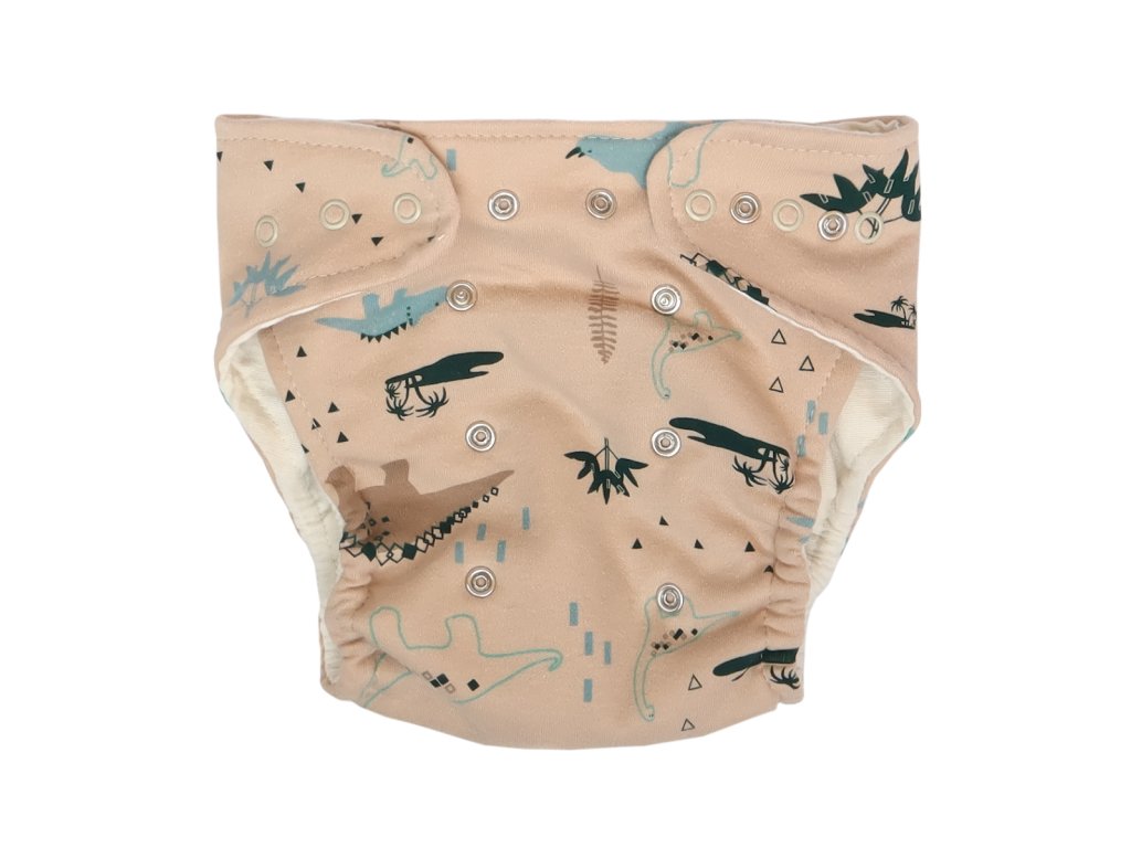 Mamatti Látková plenka EKO sada - kalhotky + 2 x plenka, Dinosaurus, vel. 3-8 kg, krémová