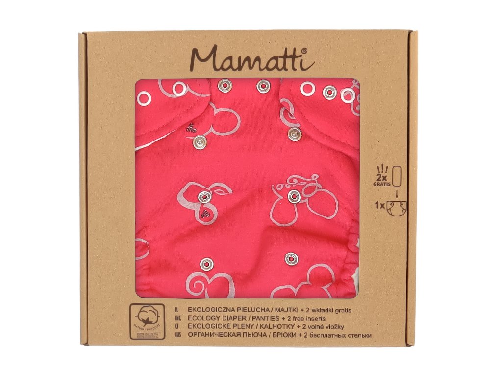 Mamatti Látková plenka EKO sada - kalhotky + 2 x plenka, Myška, vel. 3 - 8 kg, červená
