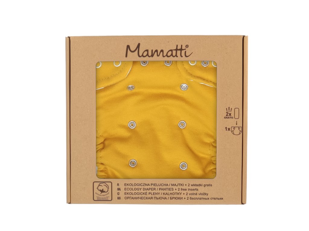 Mamatti Látková plenka EKO sada - kalhotky + 2 x plenka, Mýval, vel. 3 - 8 kg hořčicová