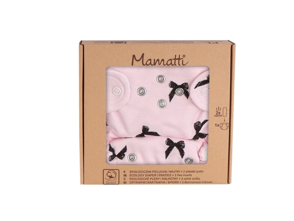 Mamatti Látková plenka EKO sada - kalhotky + 2 x plenka, vel. 3 - 8 kg, Bow