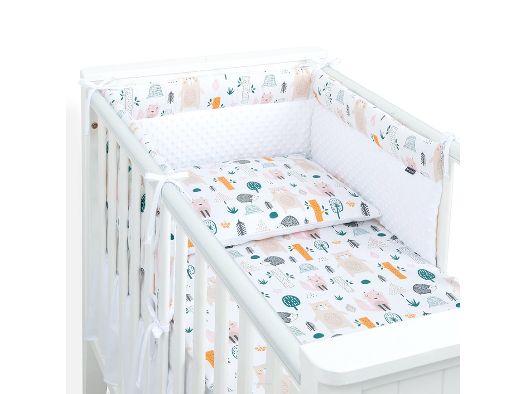 Mantinel s obliečkami do postieľky, 3D sada - Animal minky, biela, 135x100 cm, biela