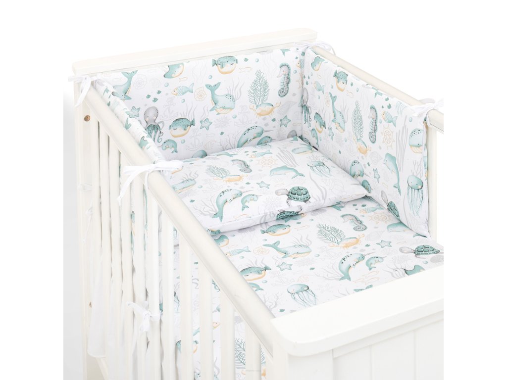 Mantinel s obliečkami do postieľky, 3D sada Bavlna, Oceán, zelená/biela, 135x100 cm