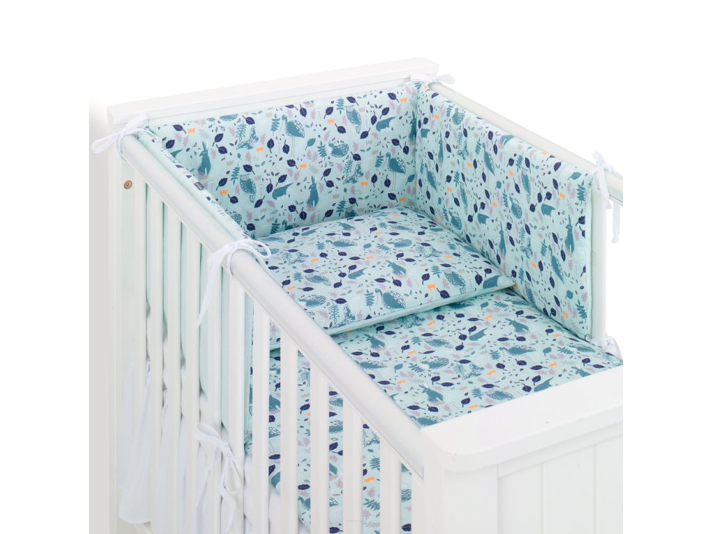 Mantinel s obliečkami do postieľky, 3D sada - Lesná priroda, biela, 135x100 cm, zelená