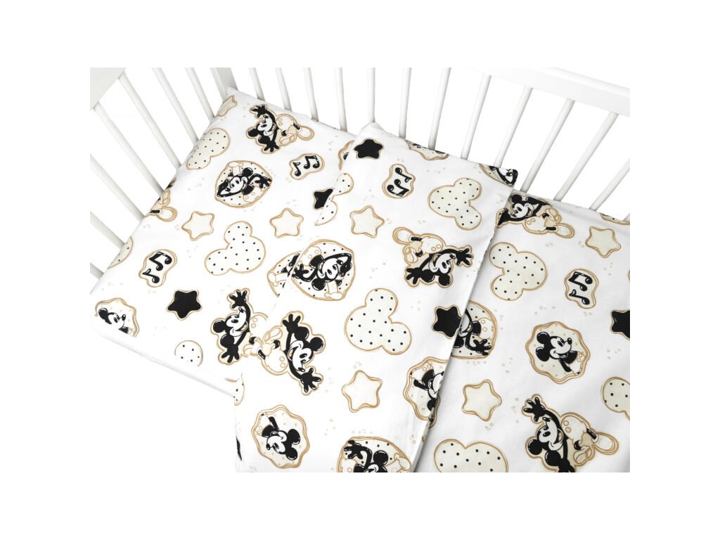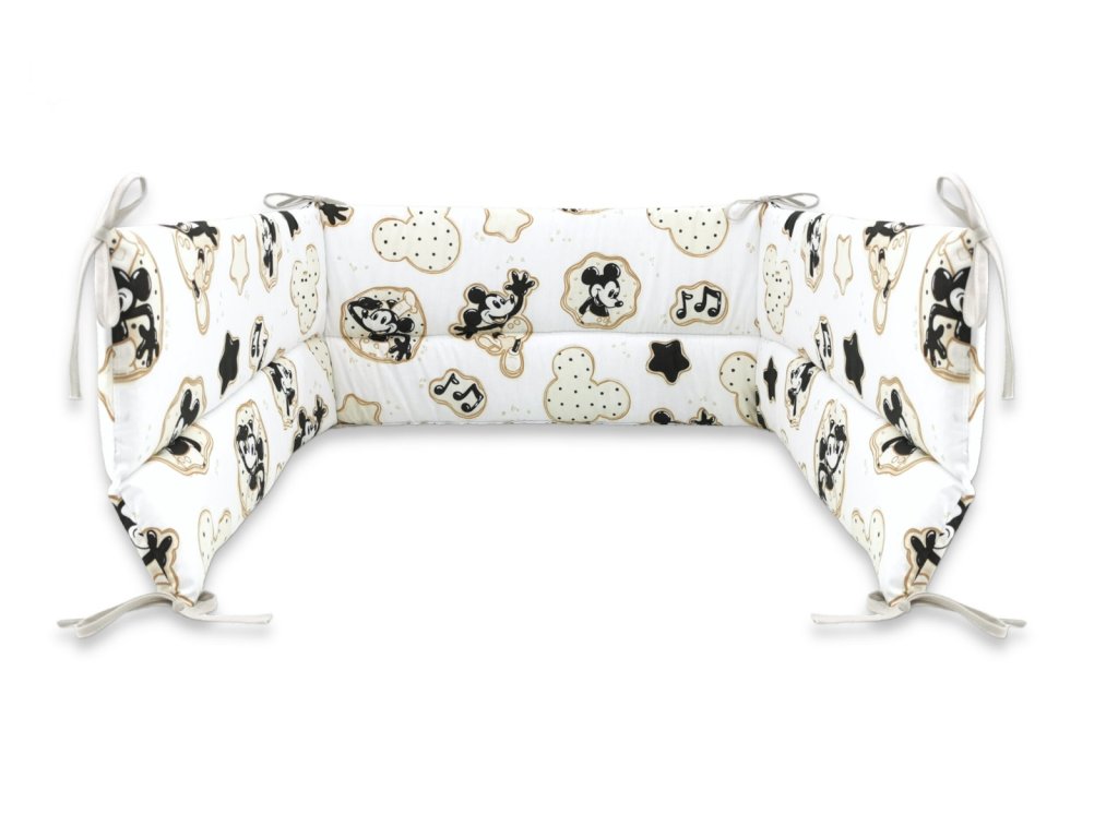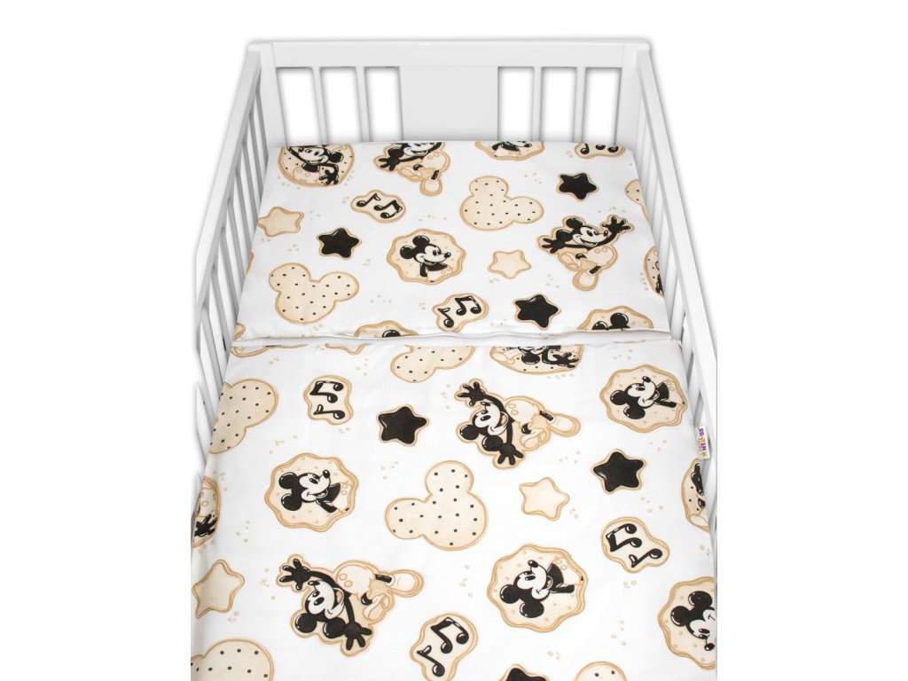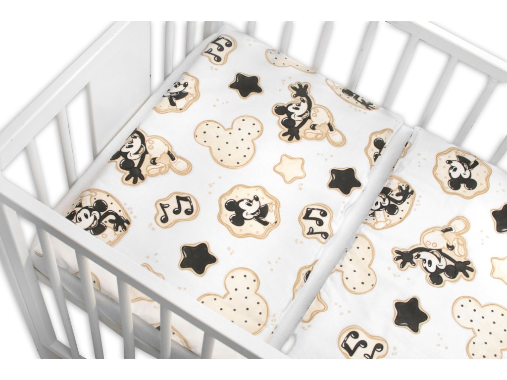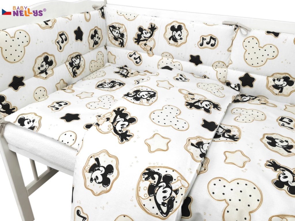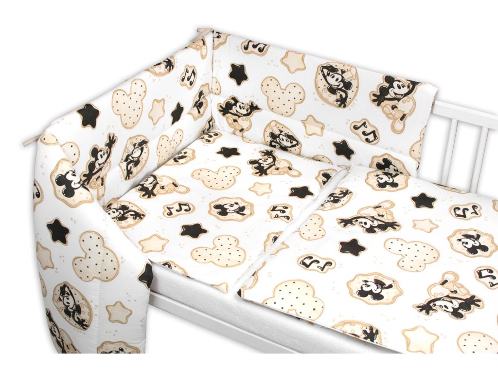 Mantinel s obliečkami do postieľky, 3D sada Myška Retro - biela s potlačou