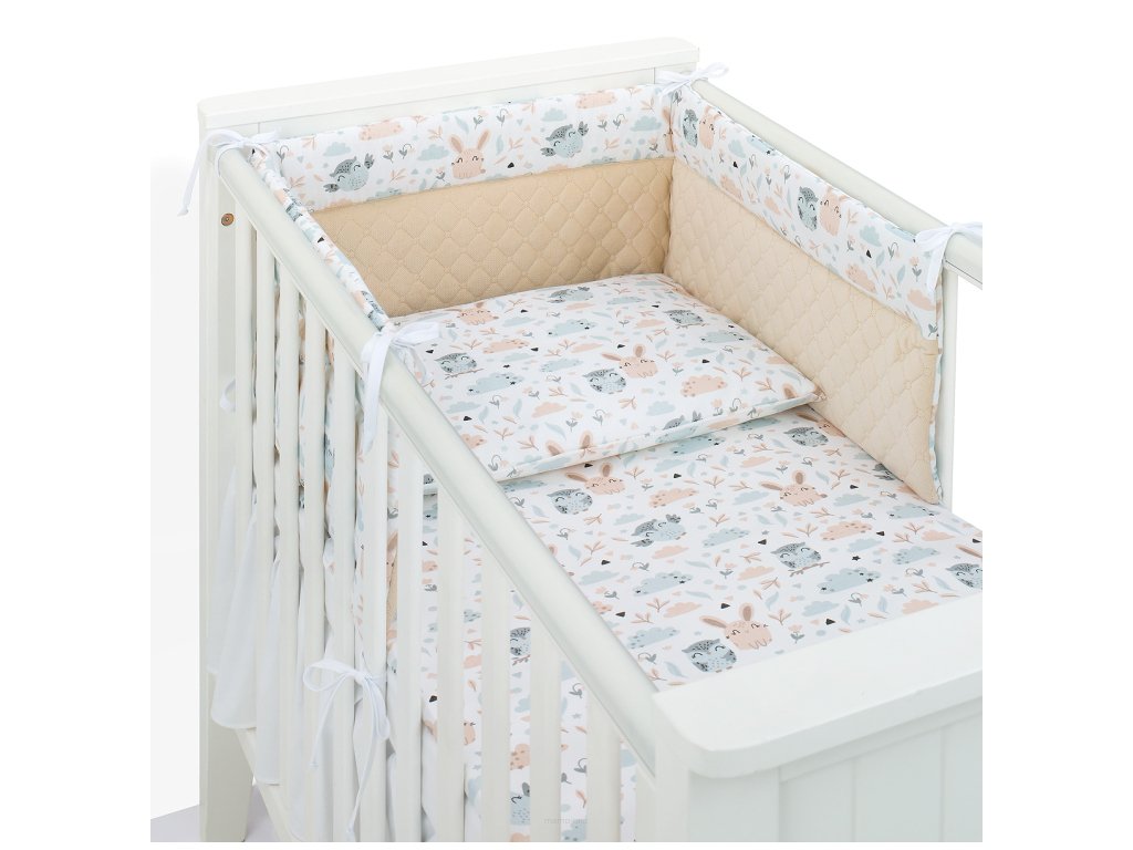 Mantinel s obliečkami do postieľky, 3D sada - Sovička, biela, 135x100 cm, béžová