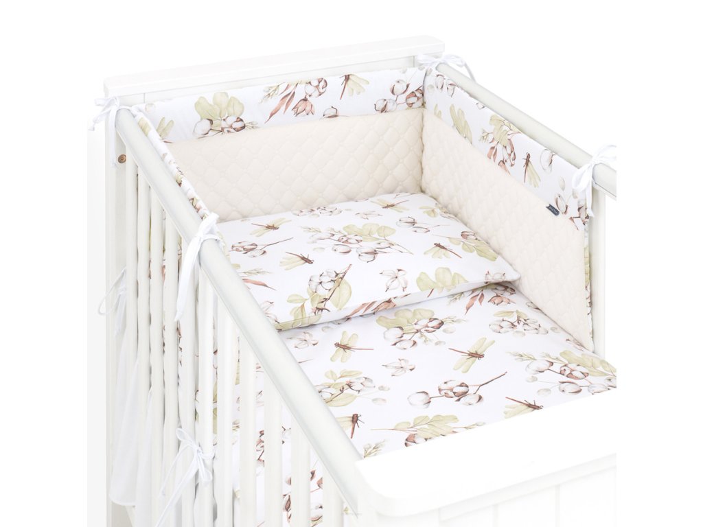 Mantinel s obliečkami do postieľky, 3D sada Velvet, Vážka, ecru/biela, 135x100 cm