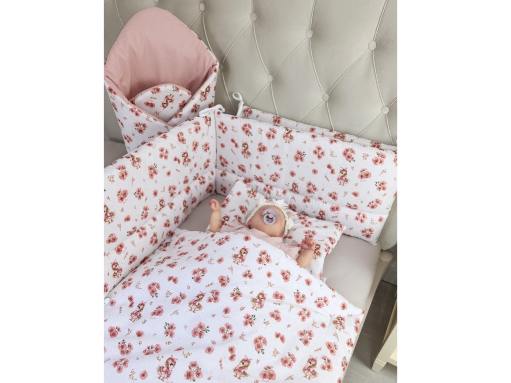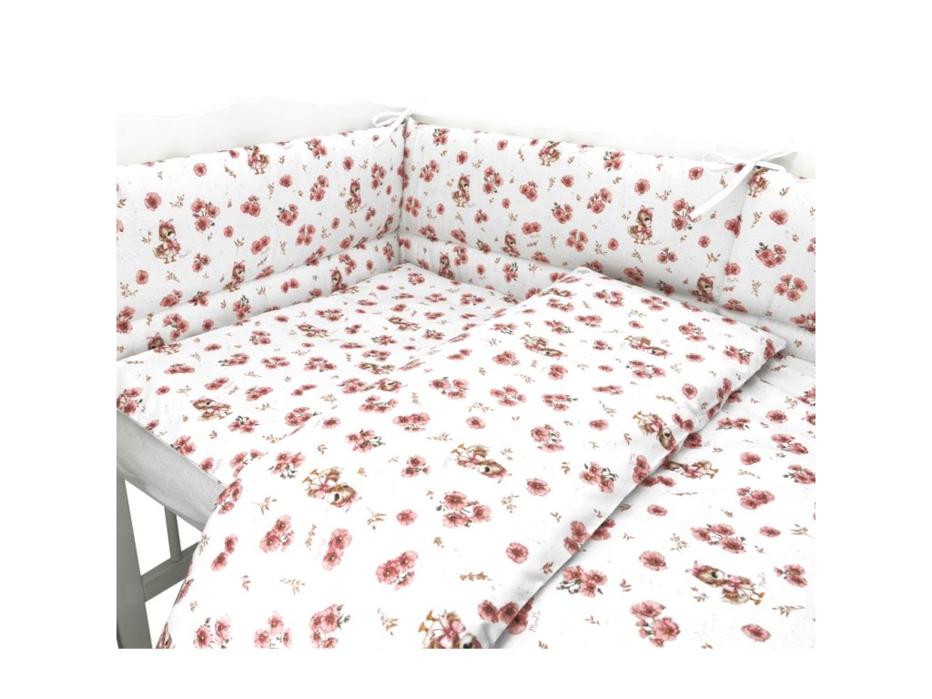 Sada obsahuje: povlak na přikrývku, povlak na polštář a mantinel.