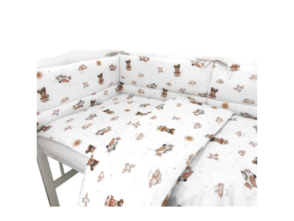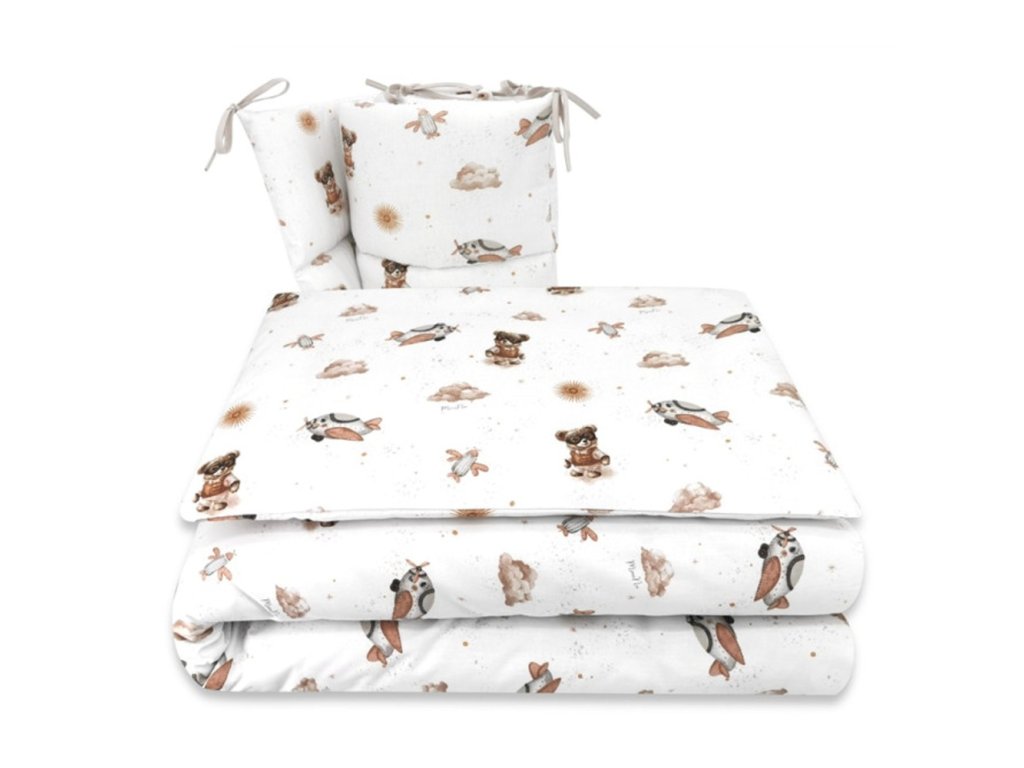 Mantinel s povlečením do postýlky, 3D sada Bavlna, Méďa pilot - bílá, béžová