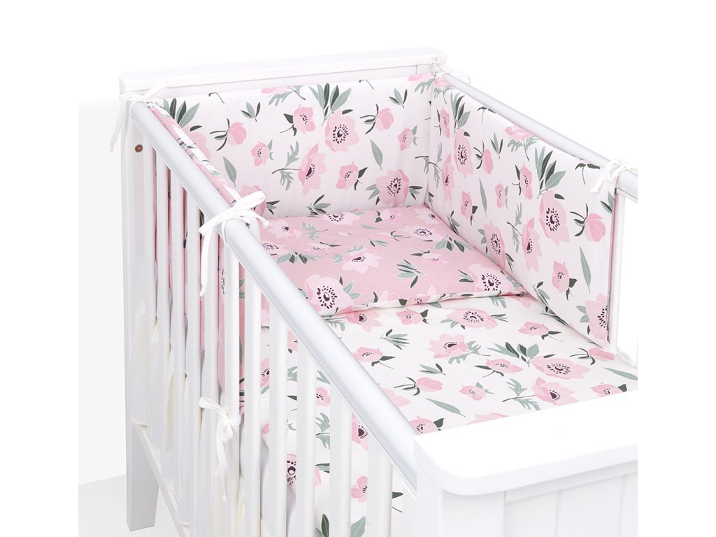 Mantinel s povlečením do postýlky, 3D sada Bavlna, Růže, pudrová/ecru