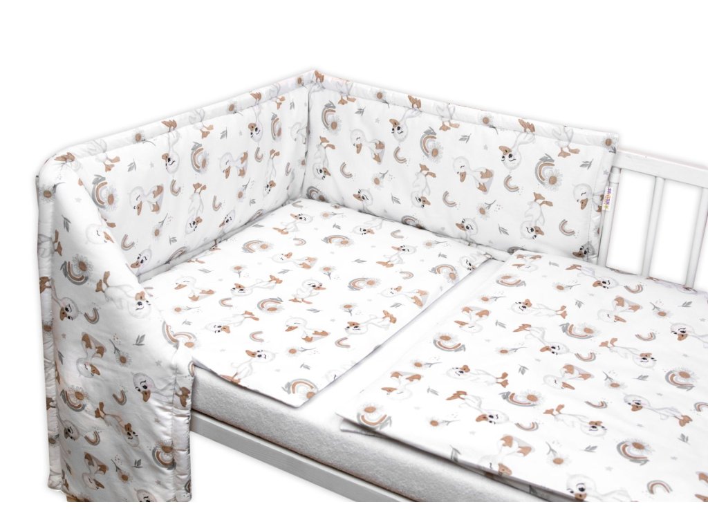 Mantinel s povlečením do postýlky, 3D sada - Kačátko, bílá/béžová