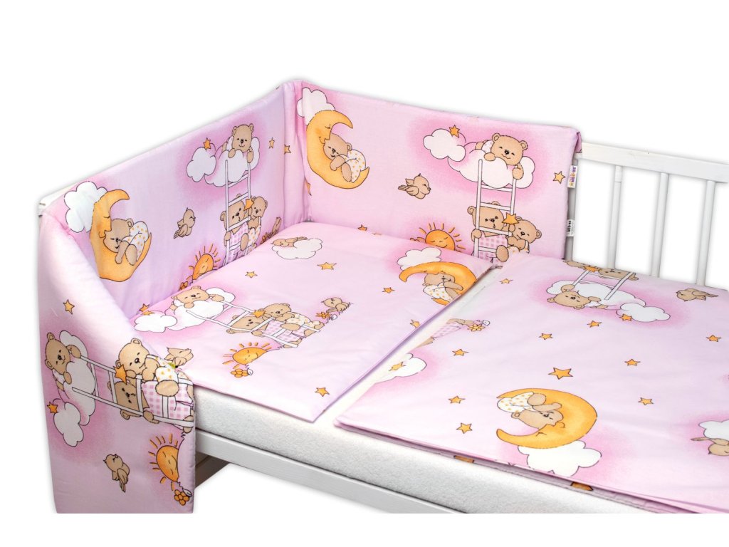 Mantinel s povlečením Premium, Baby Nellys, 3D sada, Medvídek na žebříku, růžový