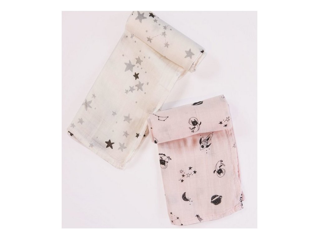 Mienky Sada látkových plienok bambus / mušelín - biela, ružová
