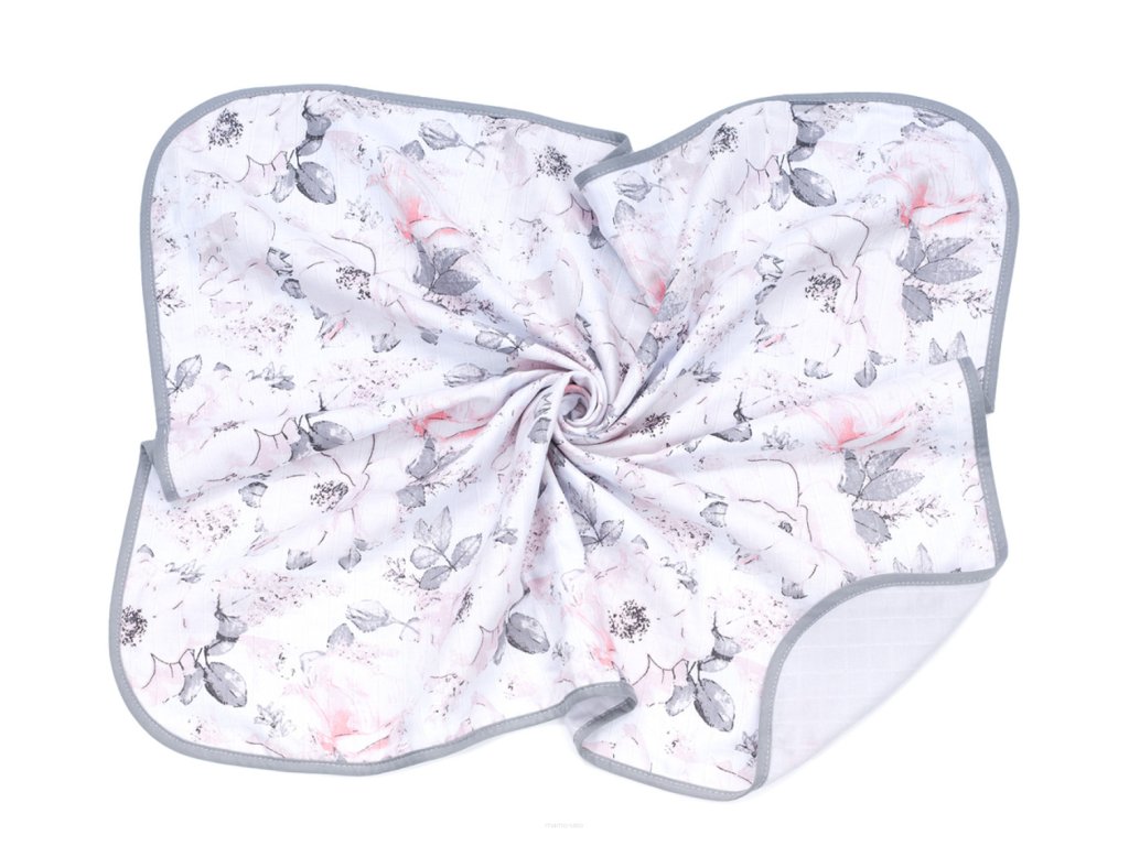 Mušelínová obojstranná deka/dečka Pivonky, pastel/šedá
