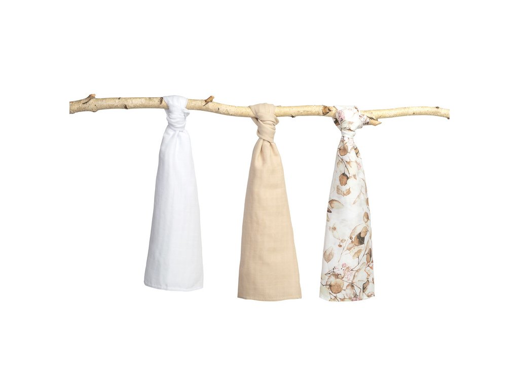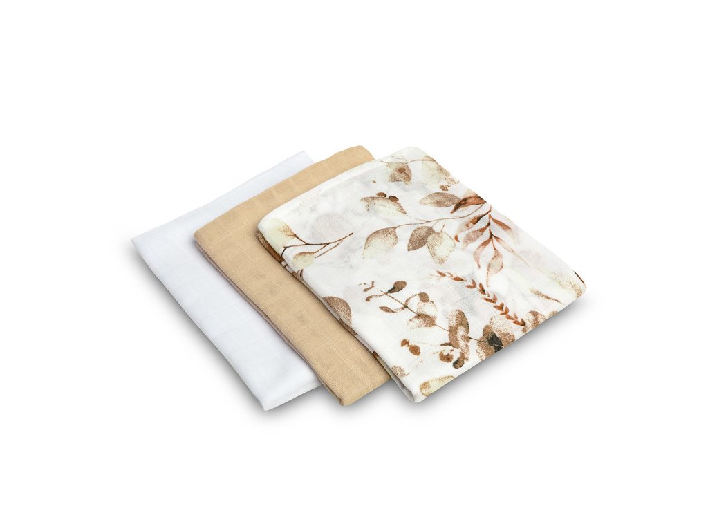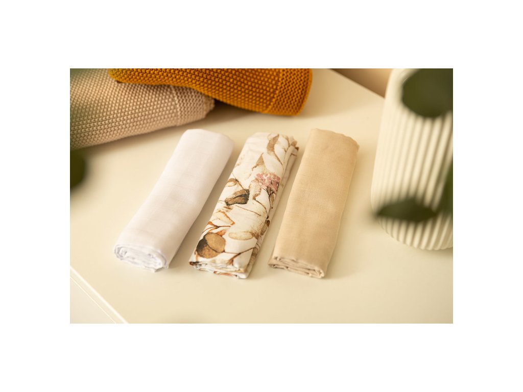 Mušelínové mäkké plienky LUX, 3ks, Kvety, biela/béžová/so vzorom