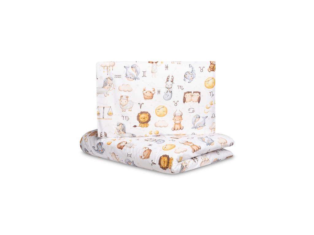 Mušelínové obliečky do postieľky 135x100, Hviezdne zvieratká - šedá, biela