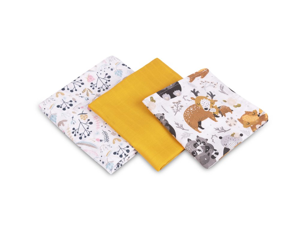 Mušelínové plienky 3 ks - sada rôznych veľkostí - Zvieratká