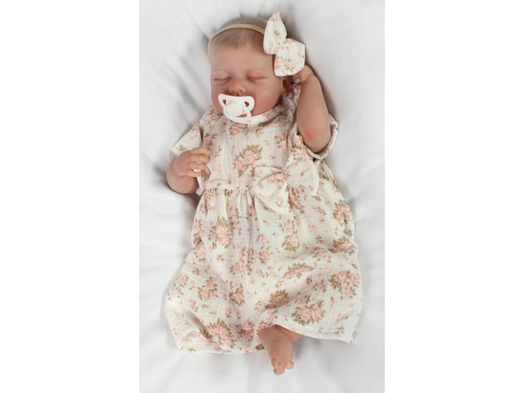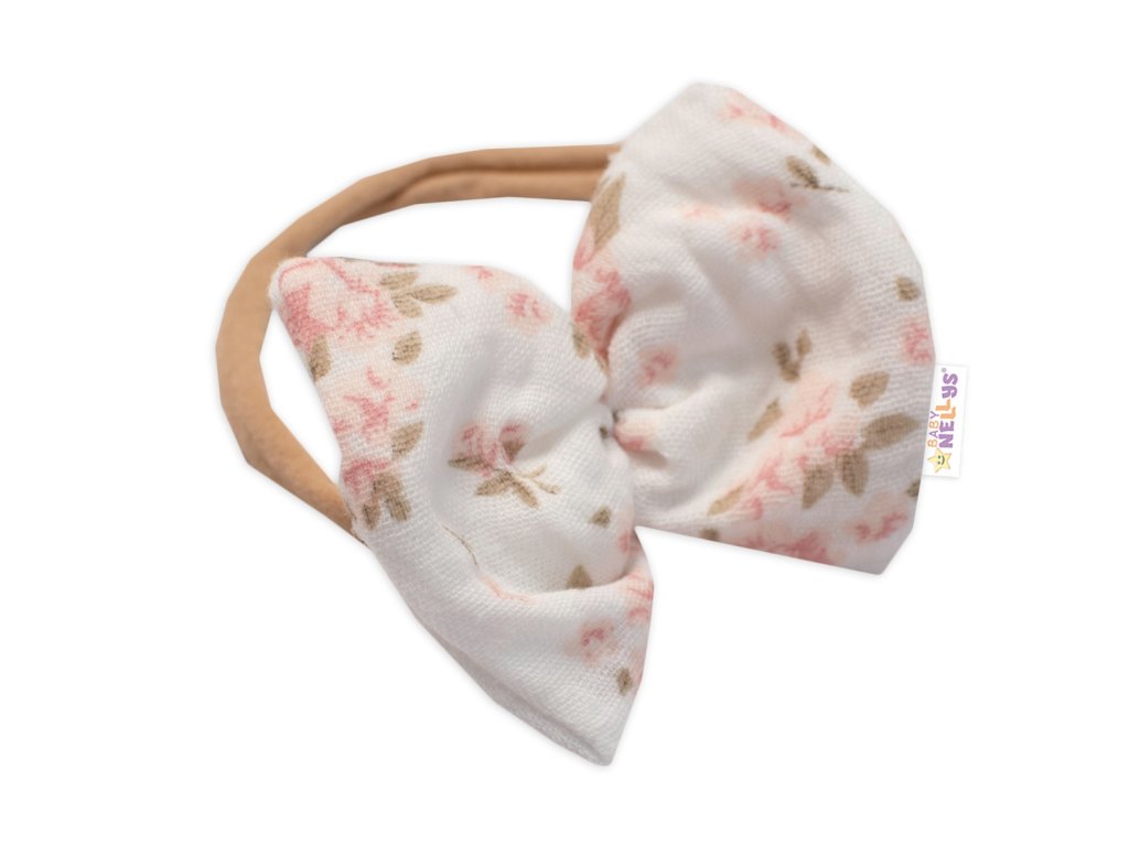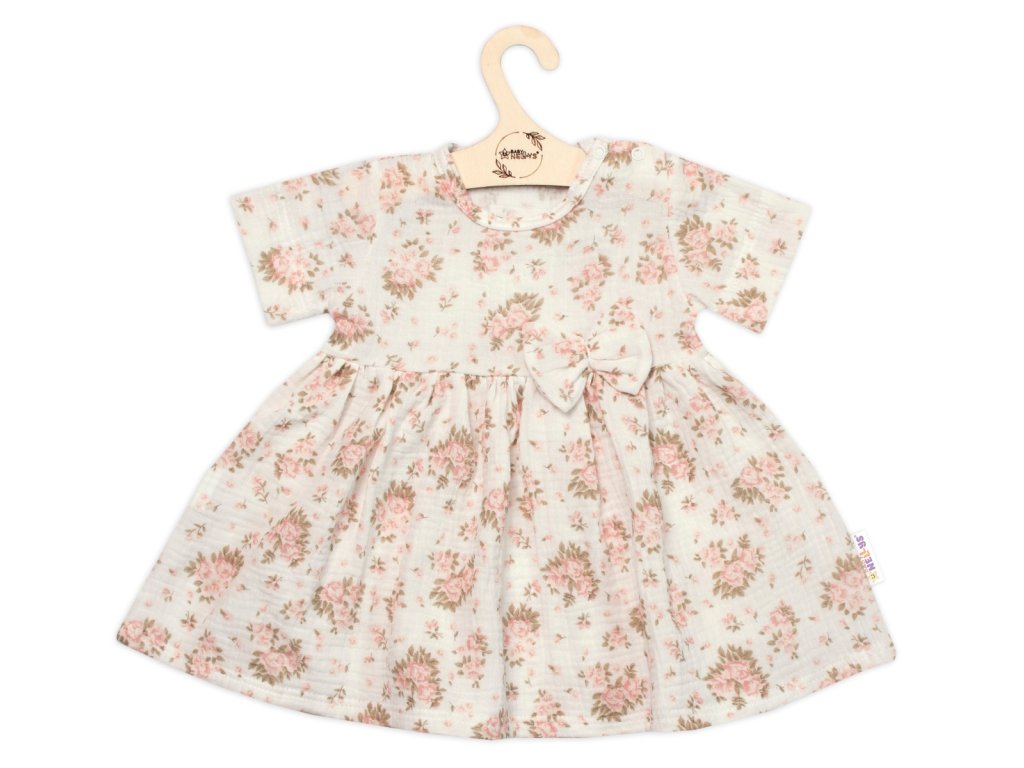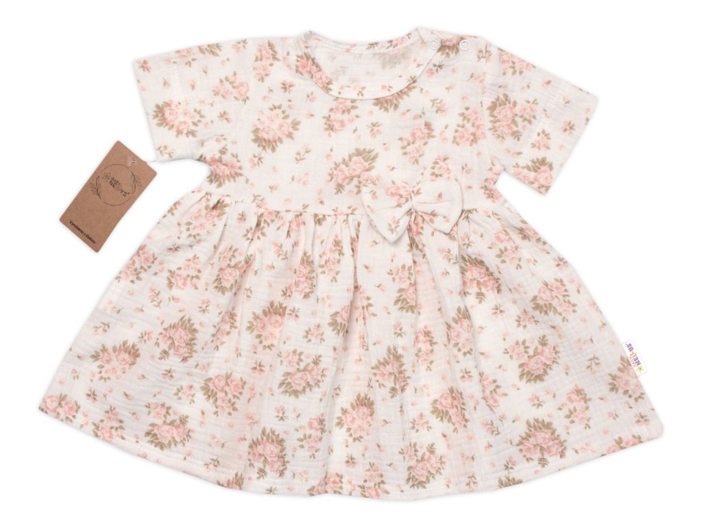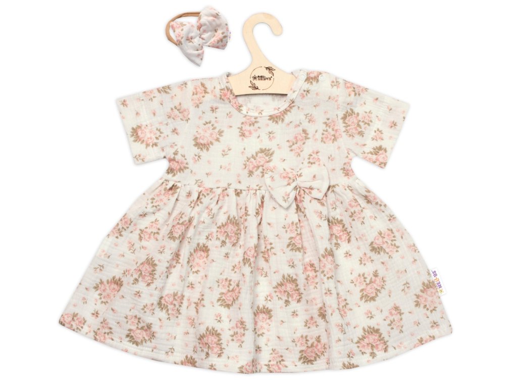 Mušelínové šatičky + čelenka 2-dílná sada Pivoňky, Baby Nellys, smetanové