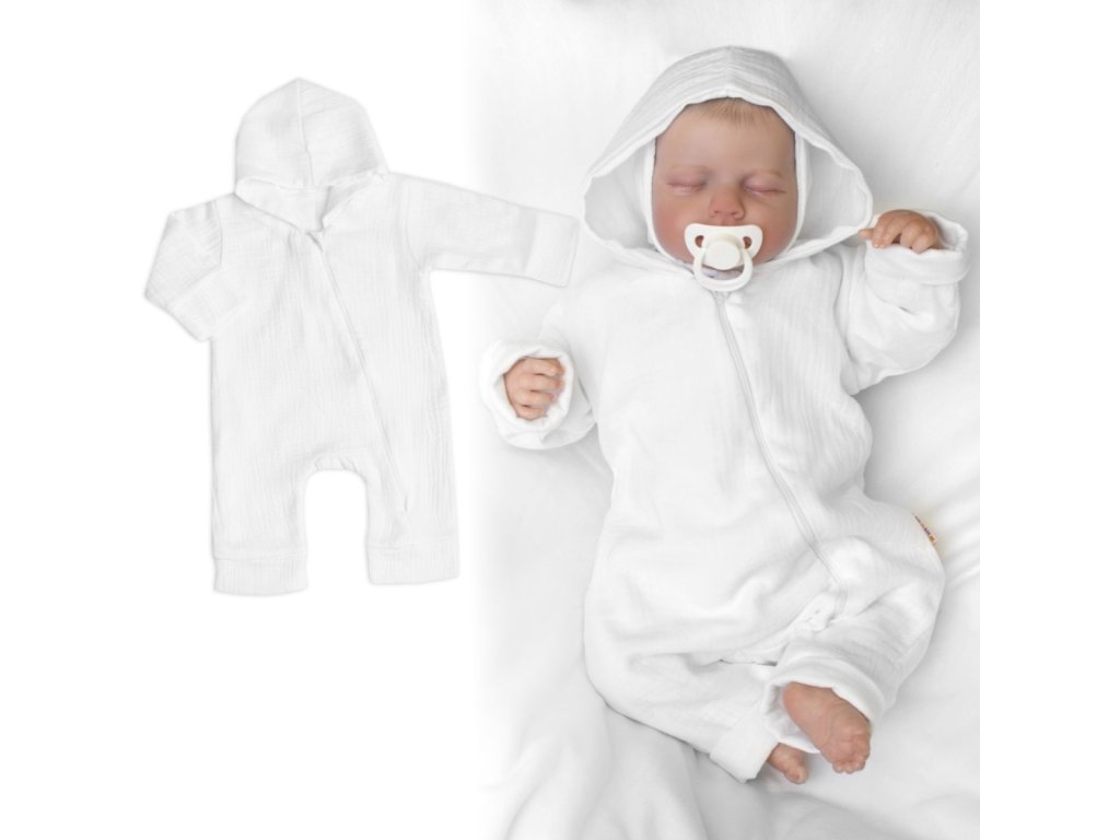 Mušelinový overálek s kapucí, dvouvrstvý, Hand Made, bílý