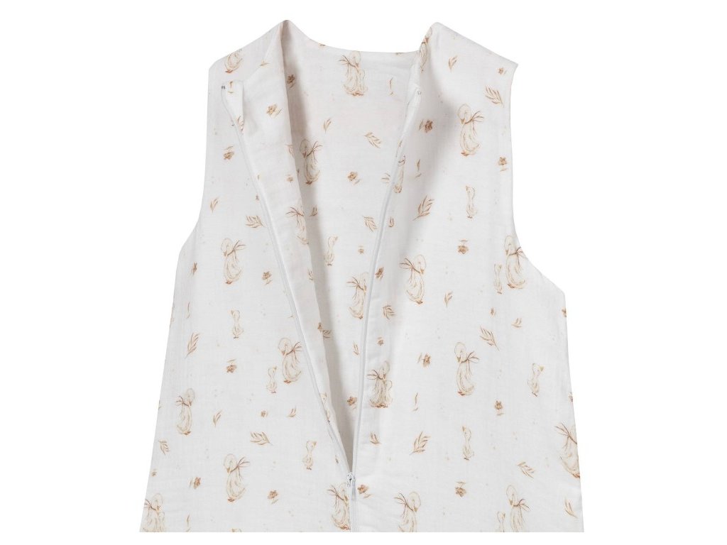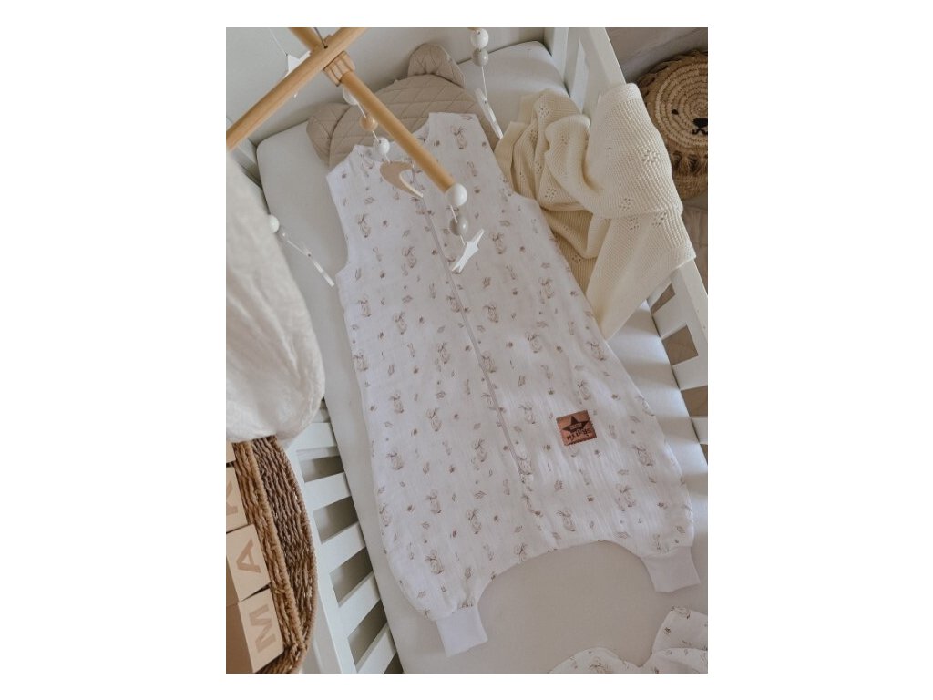 Mušelínový spací vak poskytuje pohodlie a teplo a umožňuje pokojný spánok a pre rodičov zaručuje, že sa bábätko počas spánku neodkope a neprechladne.